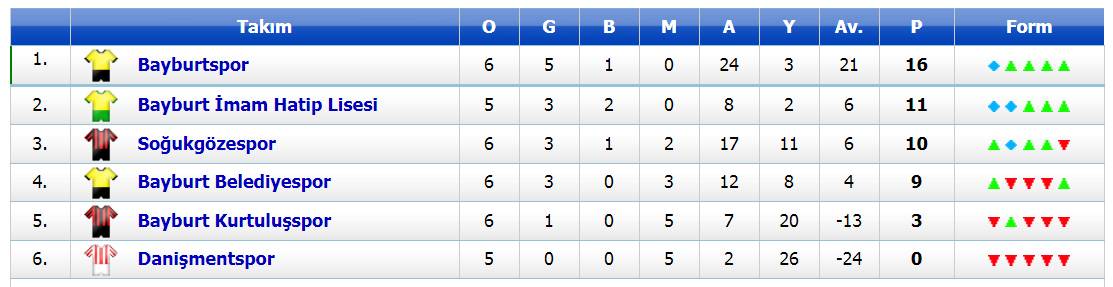 Olaylı geçen 6 hafta sonunda oluşan puan durumu şöyle: