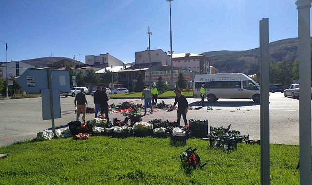 Yeni Valilik binasının bulunduğu kavşakta yaşanan olayda kasalar dolusu sebze ve meyve yola dökülürken, trafiğin de bir süreliğine durmasına sebep oldu.