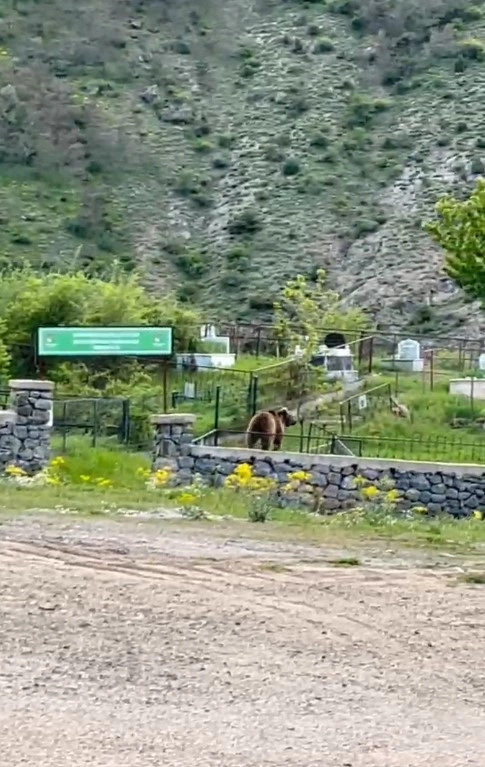 GÜMÜŞHANE (İHA) – Gümüşhane'de son dönemde sık sık vatandaşların yaşam alanlarında görüntülenen ayılar, bu kez Süleymaniye Mahallesi'ndeki mezarlıkta ortaya çıktı.