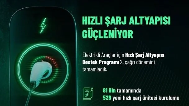 "Elektrikli Araçlar için Hızlı Şarj Altyapısı Destek Programımızın ikinci çağrısını tamamladık. 81 ilin tamamında 529 ünite kurulumuna daha destek veriyoruz. 1 milyar liralık yatırım için 300 milyon lirayı aşan hibe desteği sunuyoruz. 35 bini aşkın şarj noktasına yenilerini ekleyerek, altyapıyı ülkemizin her noktasına taşıyoruz. Türkiye’yi yenilikçi teknolojilerin öncüsü yapmak için kararlılıkla çalışmaya devam edeceğiz."