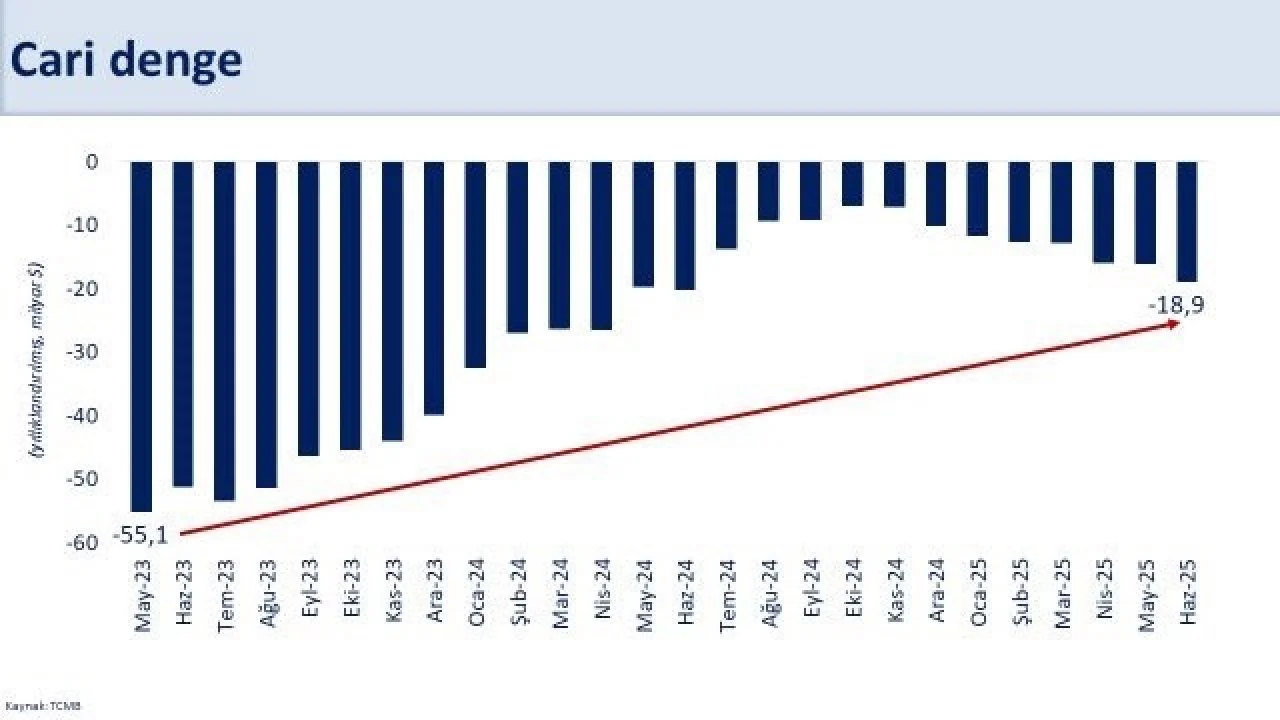 Bakan Şimşek, sosyal medya hesabından yaptığı paylaşımda, "Üretim artarken cari açık sürdürülebilir seviyelerde. Dönemsel bazda üç çeyrektir artan sanayi üretimi, ikinci çeyrekte yıllık yüzde 7,3 büyüdü. Sanayideki bu görünümün yanı sıra inşaat ve hizmetlerdeki olumlu seyir, ikinci çeyrekte yıllık büyümenin güçlendiğine işaret ediyor. Haziranda 18,9 milyar dolar gerçekleşen yıllık cari açığın ikinci çeyrekte milli gelire oranını yaklaşık yüzde 1,3 öngörüyoruz. Güçlü ihracat ve turizm gelirleri ile artan avro/dolar paritesi cari dengeyi destekliyor. Azalan küresel belirsizlikler ve dezenflasyonla birlikte iyileşen yurtiçi finansal koşulların önümüzdeki dönemde ekonomik aktiviteye katkı sağlamasını öngörüyoruz. Cari açığın milli gelire oranının sınırlı artmasını ancak yıl sonunda yaklaşık yüzde 1,5 ile sürdürülebilir seviyede kalmasını bekliyoruz" ifadelerini kullandı.