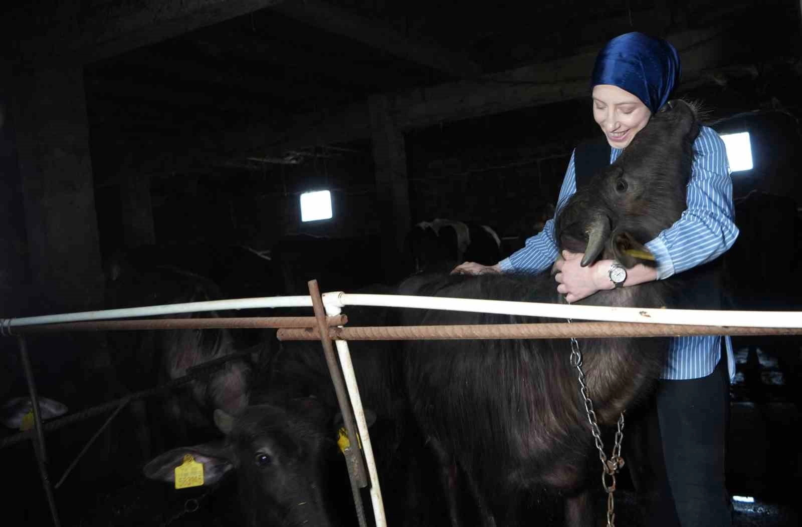 Bayburtlu genç kadın girişimci Şafak Eraslan, devletten aldığı 100 bin liralık hibe desteğiyle manda çiftliği kurarak hem üretime katıldı, hem de ev ekonomisine katkı sağladı.