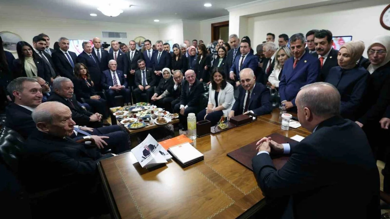 TBMM’de 28. Dönem 4. Yasama Yılı, Cumhurbaşkanı Recep Tayyip Erdoğan’ın konuşmasıyla başladı. Cumhurbaşkanı Erdoğan, konuşması sonrası Başkanlık Divanı’nda Meclis Başkanı Numan Kurtulmuş, MHP Genel Başkanı Devlet Bahçeli, DEM Parti Eş Genel Başkanları Tülay Hatimoğulları ile Tuncel Bakırhan ve İYİ Parti Genel Başkanı Müsavat Dervişoğlu ile bir araya geldi. Görüşme yaklaşık yarım saat sürdü. Görüşme sonrası basın mensuplarının sorularını yanıtlayan Cumhurbaşkanı Erdoğan, "Çok samimi bir havada görüşmemizi yaptık" dedi.