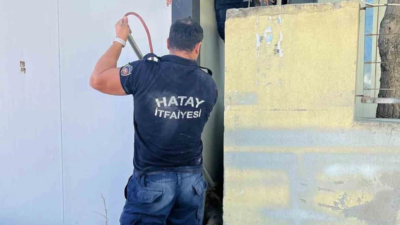 Hatay’da konteyner ve duvar arasında sıkışarak mahsur kalan yavru köpeği itfaiye ekipleri kurtardı.