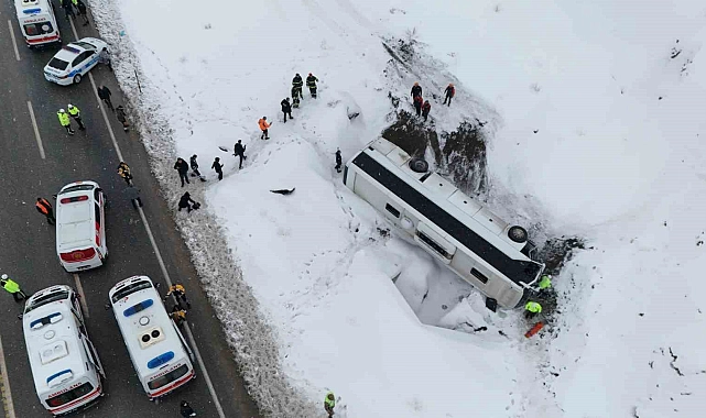 Erzincan'da yolcu otobüsünün şarampole devrilmesi sonucu ilk bilgilere göre 21 kişi yaralandı.
