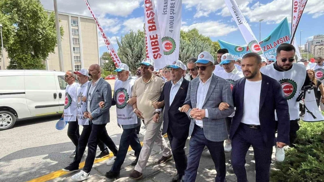 Hak İşçi Sendikaları Konfederasyonu (HAK-İŞ) tarafından Kamu Toplu İş Sözleşmeleri Çerçeve Protokolü’nde (KÇP) işçilerin taleplerinin karşılanması için Hazine ve Maliye Bakanlığı’na yürüyüş ve basın açıklaması düzenlendi.