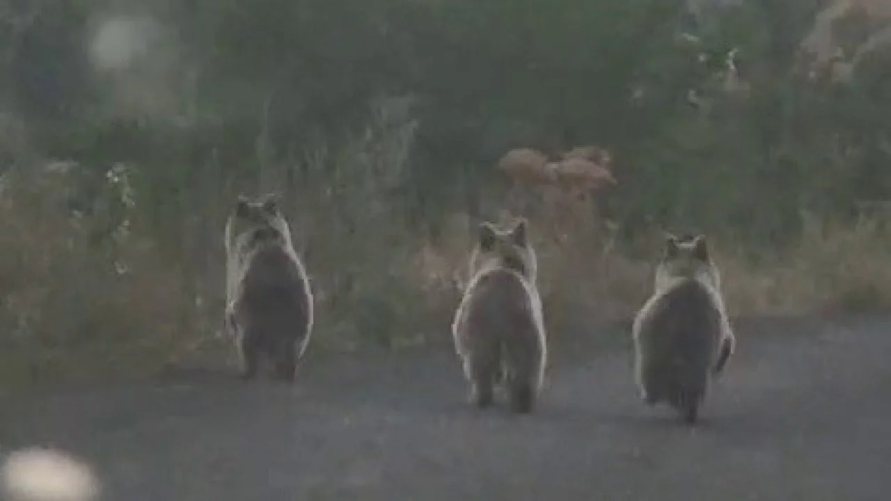 Şenkaya ilçesine bağlı Göreşken köyünde otomobille seyreder sürücü bir anda karşısında ayı ailesini gördü. 3 yavru ayı bir süre otomobilin önünde seyrettikten sonra gözden kayboldu.