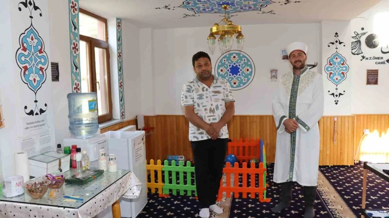 İbadet etmek için camiye gelen vatandaşlar, sıcak yaz günlerinde serin içecekler ve hediyelik ürünlerle karşılaşıyor. Bu sıra dışı hizmet ise genç imam Erkan Ayyıldız’ın girişimiyle hayata geçirildi.
