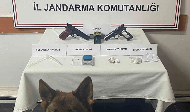 Alınan bilgiye göre, Gümüşhane İl Jandarma Komutanlığı İstihbarat Şube Müdürlüğü ekiplerinin istihbarat çalışmaları doğrultusunda S.K. isimli şahsın araçla Gaziantep'ten Gümüşhane'ye uyuşturucu madde getireceği bilgisi üzerine nöbetçi cumhuriyet savcısının talimatı ile dün gece operasyon düzenlendi. Kaçakçılık ve Organize Suçlarla Mücadele Şube Müdürlüğü (KOM) ve Merkez İlçe Jandarma Komutanlığı asayiş ekiplerince uyuşturucu arama köpeği Delil'in katılımıyla şahsın aracında ve Çalık köyündeki ev ve eklentilerinde arama yapıldı. Yapılan arama sonucu 2 adet 9 mm ruhsatsız tabanca, 2 adet tabanca şarjörü, 16 adet 9 mm tabanca fişeği, 3 gram metamfetamin uyuşturucu ve uyarıcı madde, 18 adet kenevir bitkisi tohumu, 1 adet hassas terazi ve 2 adet uyuşturucu madde kullanma aparatı ele geçirildi. Ele geçirilen malzemelerin muhafaza altına alındığı operasyonda şüpheli S.K, çıkarıldığı mahkemece tutuksuz yargılanmak üzere serbest bırakıldı.
