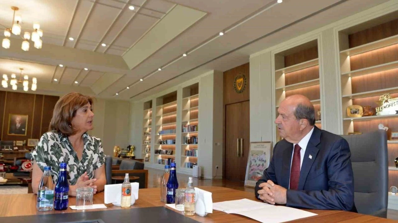 KKTC Cumhurbaşkanı Ersin Tatar, BM Genel Sekreteri’nin Kıbrıs Kişisel Temsilcisi Maria Angela Holguin Cuellar ile Lefkoşa’da bir araya geldi. Görüşmenin ardından açıklama yapan KKTC Cumhurbaşkanı Tatar, Holguin’i makamında ağırladığını ve iyi bir görüşme gerçekleştirdiklerini söyledi. Cumhurbaşkanı Ersin Tatar, Holguin’in ziyaret amacının 16-17 Temmuz tarihlerinde BM Genel Sekreteri Antonio Guterres’in ev sahipliğinde New York’ta yapılacak olan 5+1 görüşmesine hazırlık olduğunu kaydetti. Tatar, New York’taki görüşmeye kendisiyle birlikte Güney Kıbrıs Rum Yönetimi (GKRY) lideri Nikos Hristodulidis’in de katılacağını ve İngiltere’nin yanı sıra Türkiye adına Dışişleri Bakanı Hakan Fidan’ın, Yunanistan Dışişleri Bakanı Yorgos Yerapetritis ile Antonio Guterres’in de hazır bulunacağını ifade etti.
