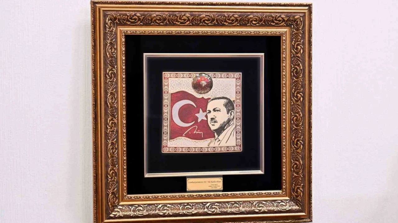 MHP Genel Başkanı Bahçeli, Türkiye Cumhuriyeti’nin 102’nci kuruluş yıl dönümü dolayısıyla Cumhurbaşkanı Erdoğan’a bir tablo hediye etti. Hediye edilen tablonun üzerinde Cumhurbaşkanı Erdoğan’ın resmi, imzası, Türk bayrağı ve Cumhurbaşkanlığı forsu yer aldı. Ayrıca tabloda Bahçeli’nin "Cumhuriyetimizin 102’nci yılı kutlu olsun" mesajı da yer aldı.