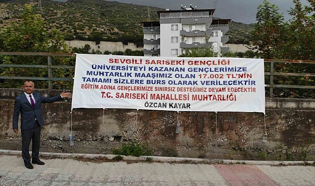Sarıseki Mahallesi muhtarı 58 yaşındaki Özcan Kayar, mahallesinde 32 öğrencinin üniversiteyi kazandığını ve dünyaca ünlü üniversitelerde okuyan öğrencilerin mahallesinde yaşadığını belirterek "Sarıseki küçük bir mahalle ve yaklaşık 7 bin nüfuslu. Sarıseki Mahallemizde iki tane Oxford, bir tane Manhattan Üniversitesi ve üç tane de ODTÜ'lü öğrencimiz var. Mühendislik dallarını, mimarlık dallarını, eğitim fakülteleri dallarını söylemekte istemiyorum. Mahallemizde 32 tane öğrencimiz, üniversite kazanmış durumdalar. Bu üniversite öğrencilerimizin sosyal ve ekonomik boyutunu ele almak için muhtarlık maaşımın tamamını kuruşu kuruşuna, tamamını üniversite öğrencilerimize burs olarak vereceğim. Şöyle bir konseptimiz var, örneğin tıp fakültesi, eczacılık, mimarlık ve mühendislik dallarının eğitim bursu babındaki rakamlar farklı olacak. Öğrencilerimize vereceğim bursun rakamları farklı olacak. Bundan yaklaşık 10 yıldır ben hiç isim belirtmeden ve reklam yapmadan zaten üniversite öğrencilerimize burs veriyordum. Okuttuğum öğrencilerimizden hiçbir karşılık beklemedim, hatta ben aday oldum son 5 ay içerisinde aday olmama rağmen burs verdim. Öğrencilerden oy dahi istemedim dolayısıyla da şu anki bizim stratejimiz bütün konvektörümüz Sarıseki'de okuyan bütün öğrencilerimizin tamamına kesinlikle eğitim bursu vereceğim, eğer ki maaşımız yeterli gelmiyorsa onun da ekonomik boyutunu bir şekilde finanse edeceğim" şeklinde konuştu.