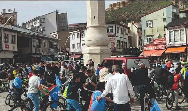 'İki Coğrafya Tek Dava' adı verilen etkinlikte, zulüm altında bulunan Doğu Türkistan ve Gazze'ye özgürlük için Hacı Gıyasi Şentürk Cami'den Bayburt Saat Kulesi'ne kadar pedal çeviren Bayburt AGD'li gençler, Saat Kule meydanında basın açıklaması yaptılar.