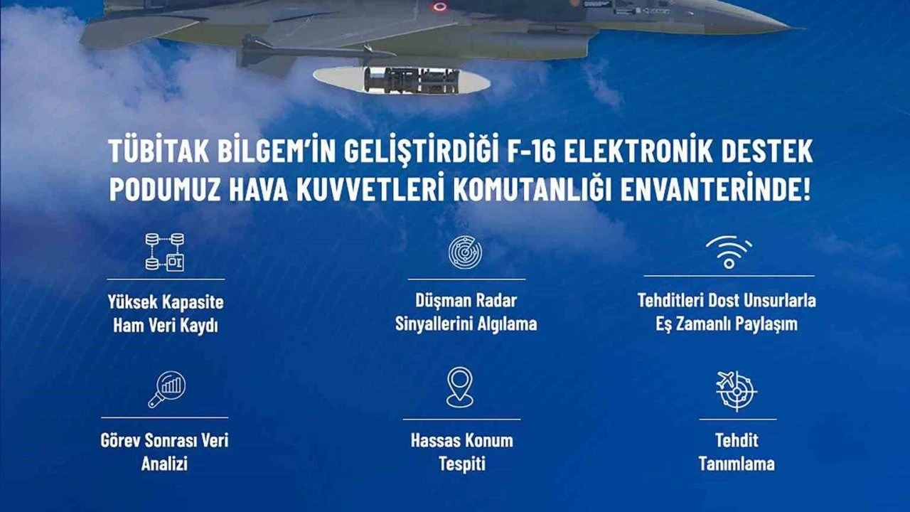 Sanayi ve Teknoloji Bakanı Mehmet Fatih Kacır, TÜBİTAK Bilişim ve Bilgi Güvenliği İleri Teknolojiler Araştırma Merkezi (BİLGEM) ana yükleniciliğinde geliştirilen Elektronik Destek Podunun (EDPOD), gerçek radar sistemlerine karşı uçuşlu testleri başarı ile tamamlayarak Hava Kuvvetleri Komutanlığı envanterine girdiğini açıkladı.