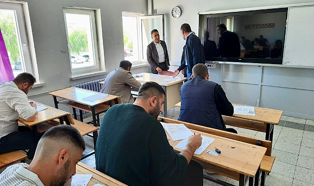 Sürücülerin ter döktüğü sınav merkezini ziyaret eden Bayburt İl Milli Eğitim Müdürü Rahmi Güney sınava giren vatandaşlara başarılar diledi.