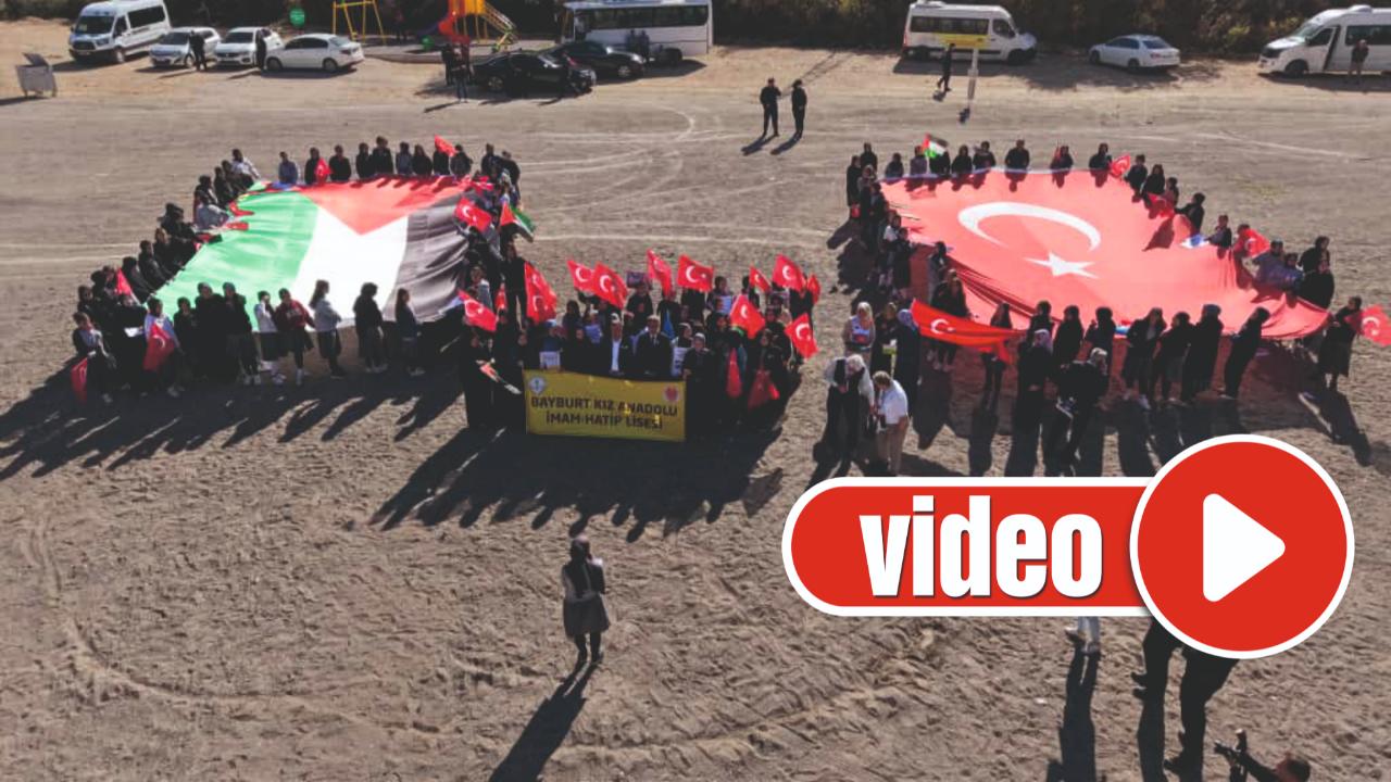 Bayburt Valisi Mustafa Eldivan’ın da katıldığı "Sumud Gemisi" etkinliğinde öğrenciler, Türk ve Filistin bayraklarıyla süsledikleri minyatür gemileri, Filistin halkına destek ve dayanışma mesajı olarak Çoruh Nehri'ne bıraktılar.