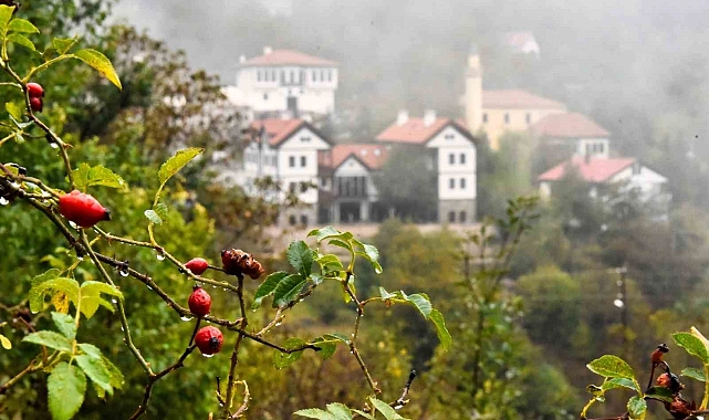 Sonbaharın etkisiyle göz alıcı manzaralar sunmaya başlayan tarihi mahallede sarı ve kırmızı yapraklar, yağmurun ardından yükselen sisle birleşince adeta bir kartpostal görüntüsü ortaya çıktı.