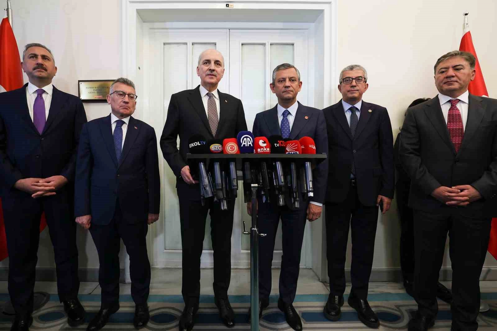 TBMM Başkanı Kurtulmuş, CHP lideri Özel'i Meclis'teki makamında ziyaret etti. Kurtulmuş'un ziyaretinde AK Parti Grup Başkanı Abdullah Güler, Grup Başkanvekili Abdülhamit Gül ile CHP Grup Başkanvekilleri Murat Emir ve Gökhan Günaydın yer aldı. Görüşme basına kapalı gerçekleşti. Yaklaşık 1 saat süren görüşmenin ardından ikili basın açıklaması yaptı. İlk olarak konuşan Kurtulmuş, "Meclis'in tamamını kapsayan komisyonla yolumuza devam etmemizin tarihsel olarak önümüzdeki en büyük sorunlardan biri olan bu terör belasından Türkiye'nin kurtulması için hangi adımlar atılabilir, onları müzakere ettik. Ben bu nazik kabulleri dolayısıyla kendilerine teşekkür ediyorum. Siyaset böyle bir şeydir. Farklı fikirleriniz olsa bile bir araya gelerek açık yüreklilikle demokratik olgunluk içerisinde fikrinizi çok net söyleyerek millete faydalı olacak konuları tartışma imkanını bulursunuz. Bu görüşmemizin bizatihi Türkiye demokrasine katkıda bulunacağına inanıyorum. Bu görüşmemiz komisyonun kurulmasına çok katkı sağlayan bir görüşme oldu. Diğer siyasi partilerle olan görüşmemizde kanaatleri alarak hepimizin uzlaşabileceği bir çalışma takvimini çalışma prensiplerini çıkararak komisyonu en kısa sürede hayata geçireceğiz" ifadelerini kullandı.