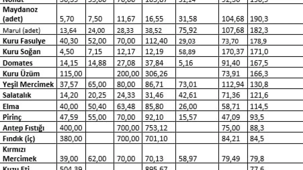 Ağustosta marketteki ürünlerin fiyat farklarına da değinen Bayraktar, "Ağustos ayında üretici ve market arasındaki fiyat farkı en fazla yüzde 335,3 ile havuçta görüldü. Havuçtaki fiyat farkını yüzde 299,9 ile kabak, yüzde 293,7 ile limon, yüzde 270,5 ile patlıcan, yüzde 222,8 ile sivri biber takip etti. Havuç 4,4 kat, kabak 4 kat, limon 3,9 kat, patlıcan 3,7 kat, sivri biber 3,2 kat fazlaya satıldı. Üreticide 11 lira olan havuç markette 47 lira 88 kuruşa, 8 lira 38 kuruş olan kabak 33 lira 49 kuruşa, 38 lira 75 kuruş olan limon 152 lira 57 kuruşa, 10 lira 88 kuruş olan patlıcan 40 lira 30 kuruşa ve 14 lira 70 kuruş olan sivri biber 47 lira 45 kuruşa satıldı. Ağustos ayında fiyatı en fazla artan ürün markette ve üreticide yeşil fasulye olurken, fiyatı en fazla düşen ürün markette kuru soğan, üreticide ise limon oldu" şeklinde konuştu.